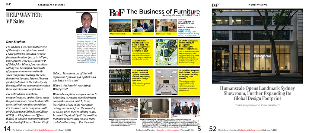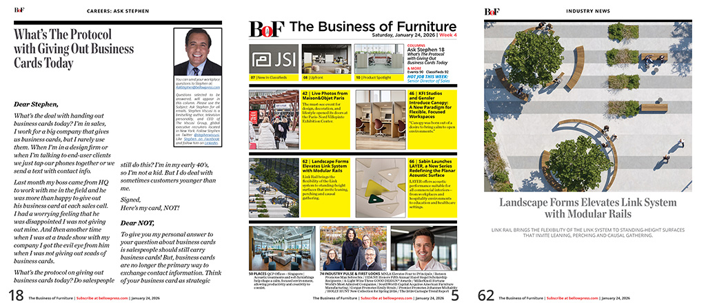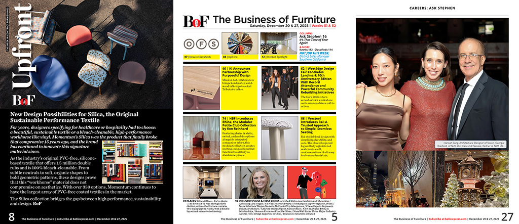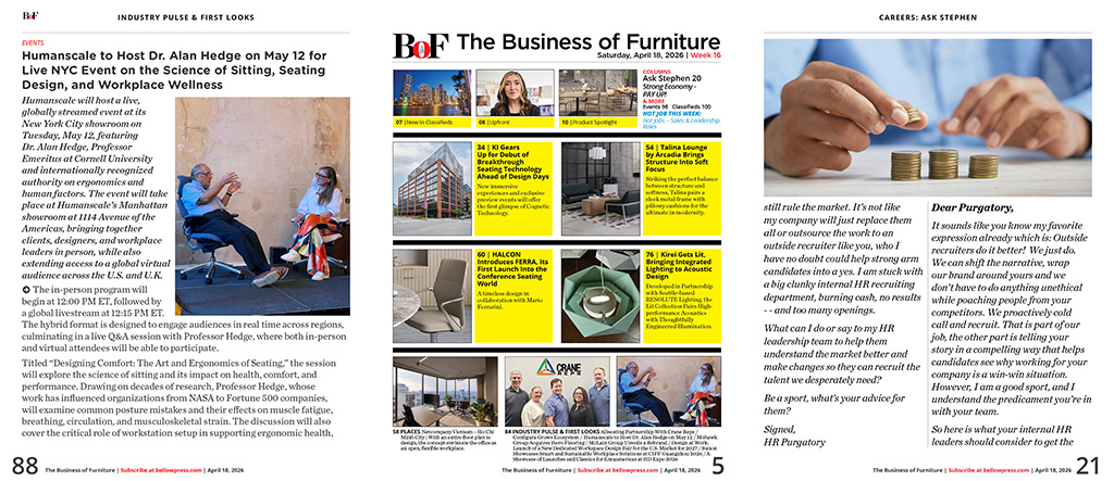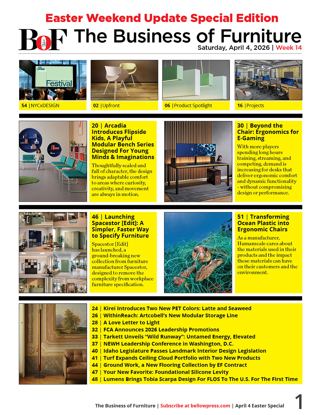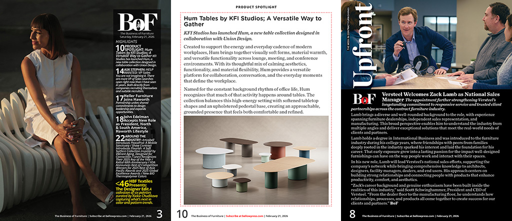 Focused exclusively on the contract furnishing industry, a singular source of strategic and practical information on selecting, deploying and managing interior furnishings.