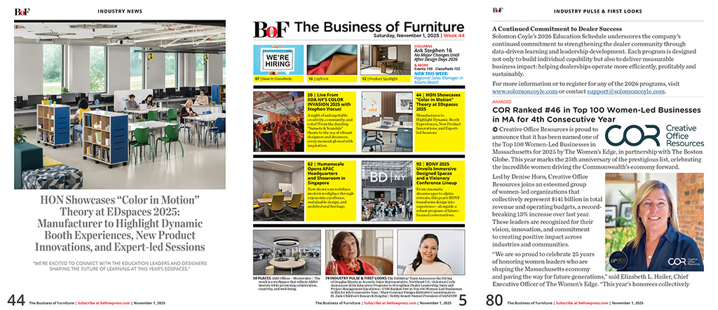 Business of Furniture, Midpoint Magazine and Workplaces Magazine are the go-to sources for keeping you informed about everything that is happening in the industry.