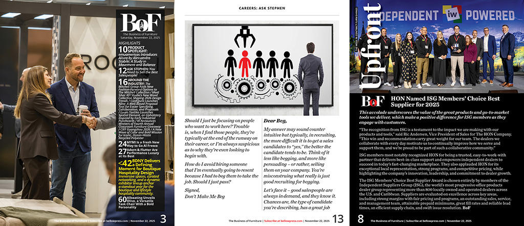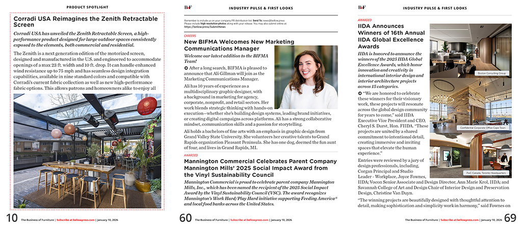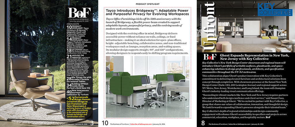 Focused exclusively on the contract furnishing industry, a singular source of strategic and practical information on selecting, deploying and managing interior furnishings.